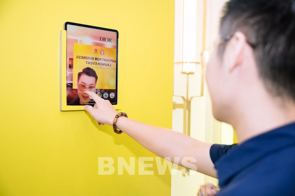 Khách mời trải nghiệm ứng dụng Snapchat mua sắm sản phẩm online. Ảnh: BNEWS/TTXVN phát