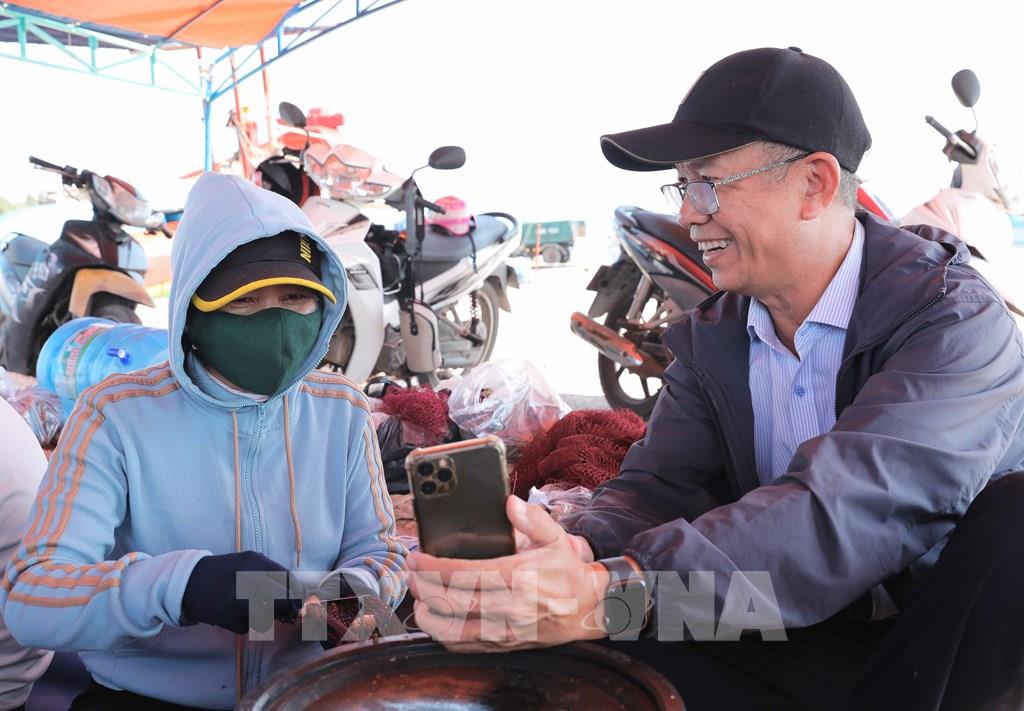 Do thường xuyên đánh bắt xa bờ, ngư dân được hướng dẫn tải và sử dụng ứng dụng để báo cáo, theo dõi, cung cấp dữ liệu về động vật biển kịp thời, chính xác, góp phần bảo tồn hệ sinh thái biển. Ảnh: Phan Phương – TTXVN