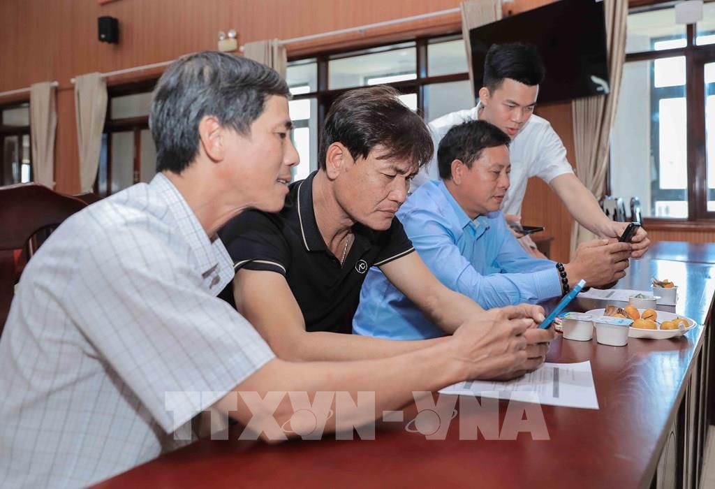 Các chuyên gia hướng dẫn ngư dân tải, sử dụng ứng dụng báo cáo, theo dõi, cung cấp dữ liệu về động vật biển. Ảnh: Phan Phương – TTXVN