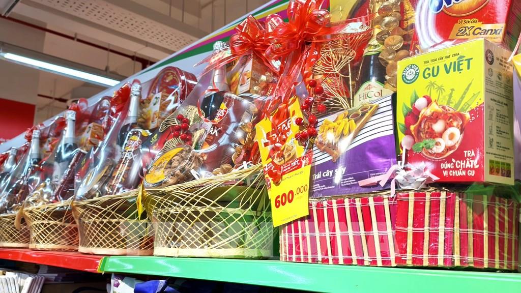 Giỏ quà Tết Nguyên đán Bính Ngọ 2026 được bày bán tại Siêu thị Go! phường Phan Rang (Khánh Hòa). Ảnh: Nguyễn Thành - TTXVN
