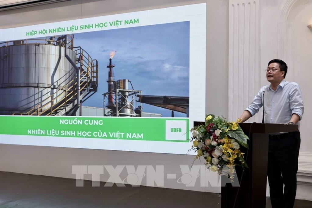 Chủ tịch Hiệp hội nhiên liệu sinh học Việt Nam Đỗ Văn Tuấn phát biểu. Ảnh: Trần Việt - TTXVN