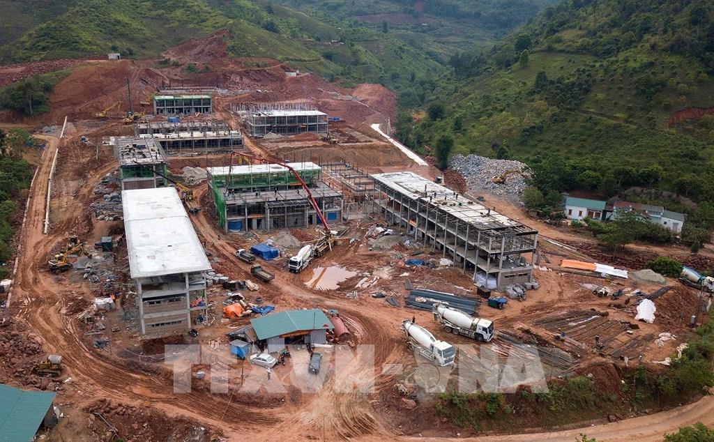 Dự án Trường nội trú liên cấp Tiểu học và Trung học cơ sở Lóng Sập đang được triển khai với nhịp độ khẩn trương. Ảnh: Trọng Đạt-TTXVN