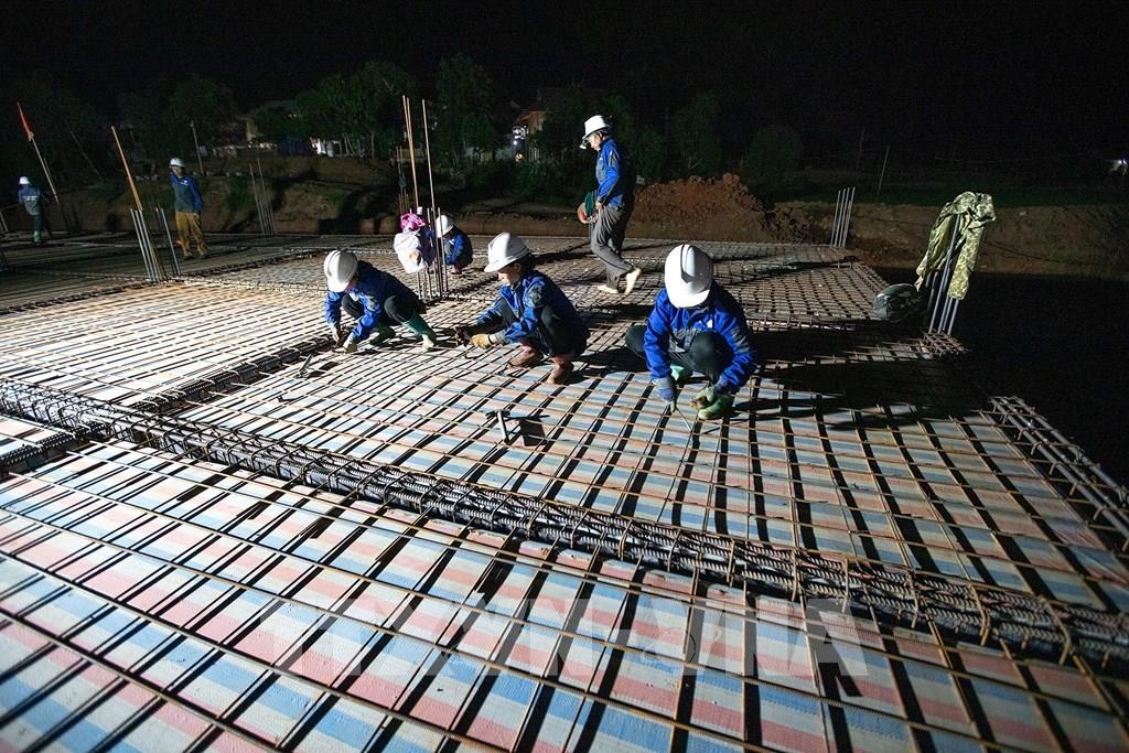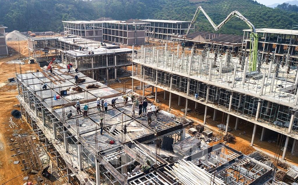 Em Lường Quỳnh Chi, ở bản Nà Hiềng, xã Xuân Nha háo hức chia sẻ, em mong trường mới xây dựng xong chúng em sẽ có phòng học đẹp, có chỗ ở để đi học đỡ vất vả. Tại xã Lóng Sập, dự án Trường nội trú liên cấp Tiểu học và Trung học cơ sở đang được triển khai với nhịp độ khẩn trương. Nhà thầu thi công là Công ty TNHH Đầu tư sản xuất và thương mại Xuân Thịnh đã huy động cán bộ kỹ thuật, 20 lái xe, lái máy và 300 nhân công. Khối lượng thiết bị cơ giới lớn với 8 máy xúc, các máy ủi, máy lu, cẩu tự hành 15 tấn, 10 ô tô, máy khoan dẫn và máy ép tĩnh giúp công trình được đẩy nhanh tiến độ. Hiện toàn bộ 10/10 hạng mục nhà chính đã triển khai, đạt khoảng 57% tiến độ dự án. Chỉ huy công trường điểm Trường nội trú liên cấp Tiểu học và Trung học cơ sở Lóng Sập Trần Trung Kiên cho biết, địa bàn xây dựng điểm trường Lóng Sập xa cùng với thời tiết mưa dông bất thường đã ảnh hưởng lớn đến việc vận chuyển vật liệu, công tác tổ chức thi công gặp không ít khó khăn. Tuy nhiên, đơn vị thi công xác định đây là công trình đặc biệt quan trọng, mang lại giá trị thực tiễn to lớn cho học sinh dân tộc thiểu số ở vùng biên cương Tổ quốc nên đơn vị đang tập trung tối đa các nguồn lực, chia lực lượng công nhân thành nhiều ca, kíp làm việc trên công trường cả những ngày nghỉ, ngày lễ, chạy đua với thời gian, quyết tâm hoàn thành tiến độ, đưa dự án về đích trong dịp 30/6/2026.Khi màn đêm xuống, các công trường vẫn rực sáng. Nhiều tốp công nhân tiếp tục hàn thép, đổ bê tông tại các hạng mục, xe ô tô nhộn nhịp ra vào công trường, chạy đua với thời gian, tranh thủ từng giờ, đoàn kết đồng lòng nỗ lực hoàn thành tiến độ dự án đã đề ra.