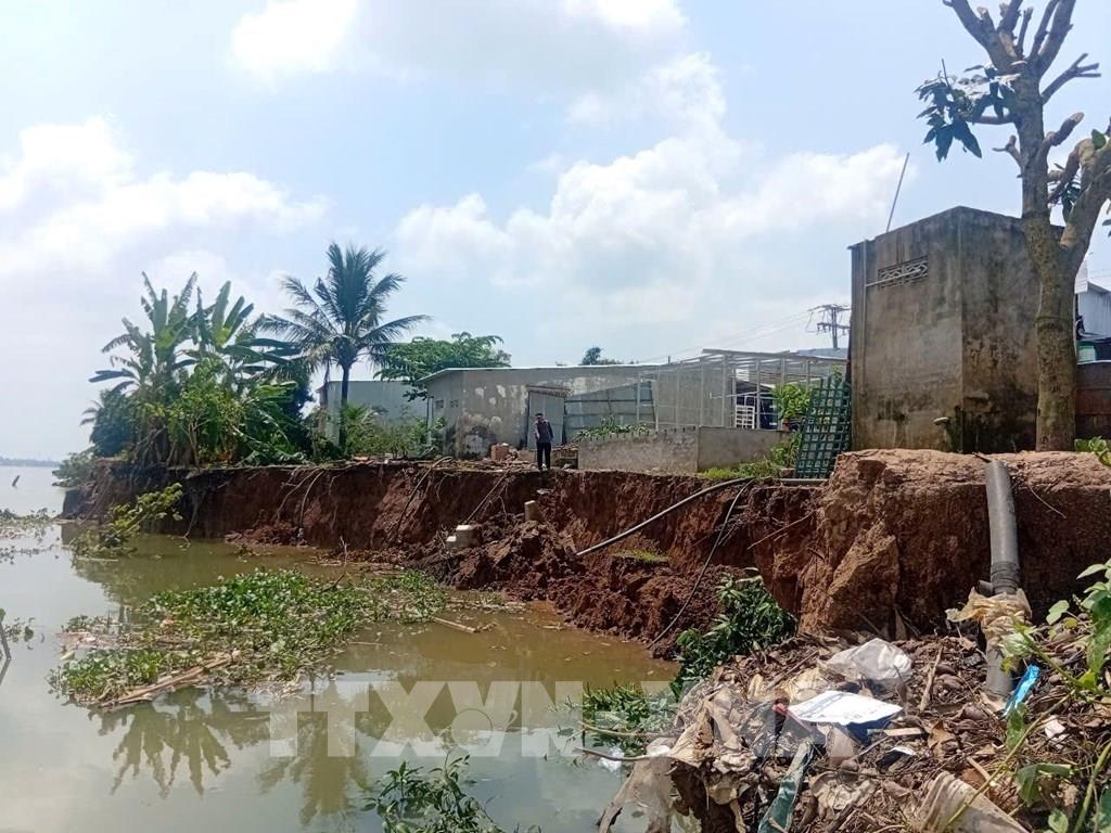 Điểm sạt lở bờ sông Tiền thuộc ấp Tân Quới, xã Tân Long, tỉnh Đồng Tháp vào ngày 7/3/2026. Ảnh: TTXVN phát