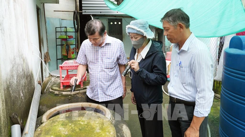Ngành y tế tỉnh Đồng Tháp kiểm tra, giám sát nguồn bọ gậy tại hộ gia đình. Ảnh: Công Trí-TTXVN