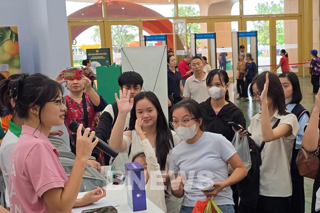 Cùng với hương vị quyến rũ của các món ăn thì minigame trả lời câu hỏi trúng quà tại các gian hàng thực phẩm cũng thu hút đông đảo khách tham quan hào hứng tham gia. Ảnh: Lê Phương/Bnews/vnanet.vn Bên cạnh đó, một số thực phẩm bổ dưỡng như yến sào, táo đỏ, đông trùng hạ thảo cũng được giới thiệu tại Hội chợ Mùa Thu 2025. Ảnh: Lê Phương/Bnews/vnanet.vn