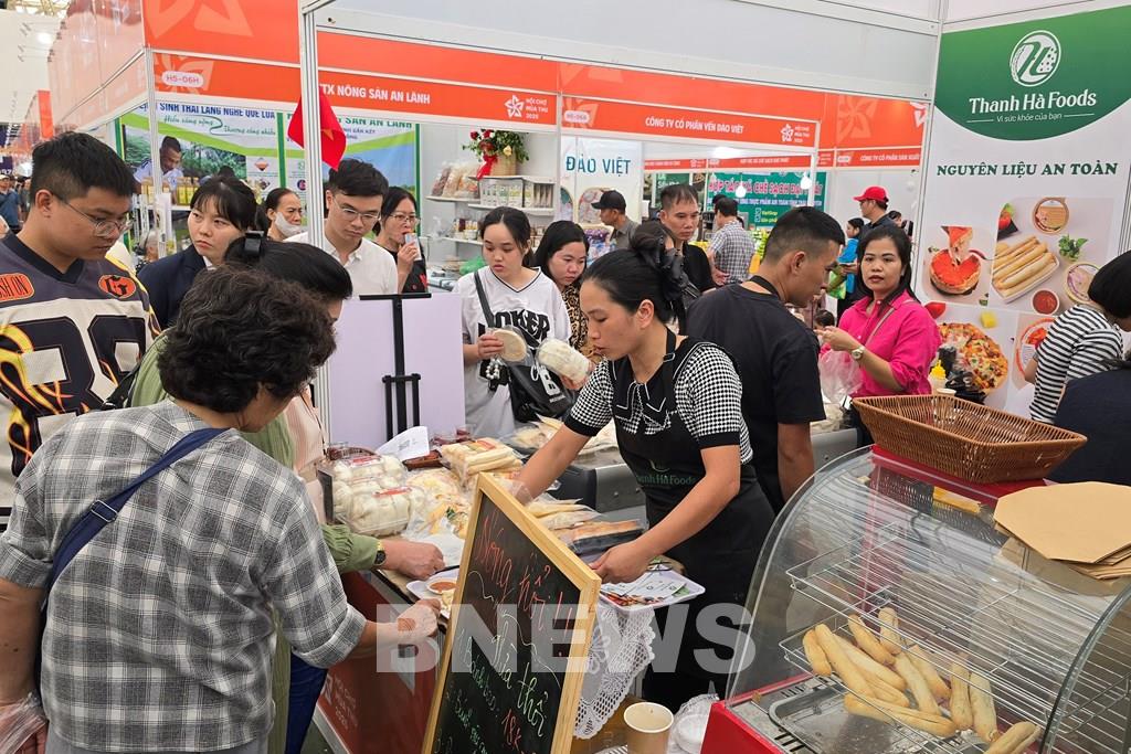 Một quầy bánh mỳ Hội An tại Hội chợ Mùa Thu 2025 với hàng dài thực khách xếp hàng chờ mua bánh. Ảnh: Lê Phương/Bnews/vnanet.vn Không khí nhộn nhịp tại gian hàng của Thanh Hà Foods với nhiều món ngon có thể sử dụng làm bữa sáng nhanh, gọn, đủ chất tại gia đình. Ảnh: Lê Phương/Bnews/vnanet.vn