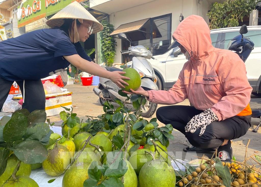 Các loại trái cây giá ổn định hút khách trong ngày cúng ông Công ông Táo. Ảnh: Hương Giang - TTXVN