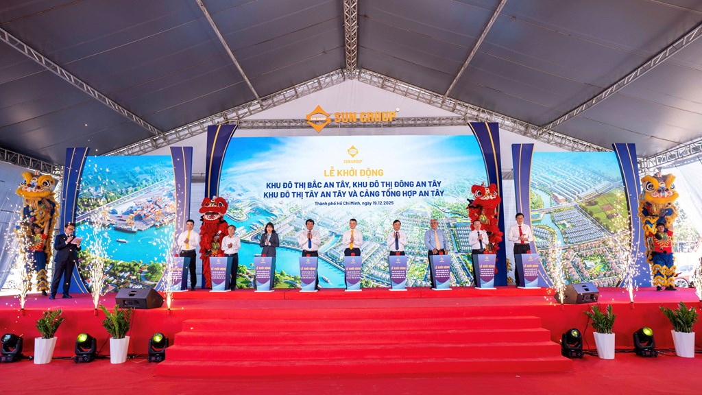 Khu vực hai bên sông Tô Lịch sẽ được cải tạo toàn diện hệ thống sân đường, vỉa hè, quảng trường, đường dạo bộ, đường xe đạp, bãi đỗ xe, sân chơi và sân thể thao, hình thành chuỗi không gian công cộng liên hoàn, an toàn và giàu tính thẩm mỹ. Song song là các công trình kiến trúc điểm nhấn như cầu đi bộ nghệ thuật, bến thuyền, đài vọng cảnh, không gian trưng bày, dịch vụ cà phê – nhà hàng… Bên cạnh đó, dự án sẽ bổ sung nhiều lớp cây bóng mát, cây thủy sinh và thảm xanh, góp phần cải thiện môi trường, chống xói mòn và phục hồi hệ sinh thái sông Tô Lịch. Cụm dự án An Tây có tổng quy mô 724 haTọa lạc tại phường Tây Nam và phường Phú An, cụm 4 dự án An Tây có tổng quy mô 724 ha, tổng vốn đầu tư 51.160 tỷ đồng, định hướng hình thành trung tâm đô thị – cảng hiện đại, góp phần mở rộng không gian phát triển cho TP. Hồ Chí Minh. Sở hữu vị trí chiến lược hiếm có tại tâm điểm kết nối các trục giao thông trọng yếu, cụm dự án nằm trên vòng cung liên kết của Vành đai 4, tuyến ĐT.744, tuyến đường sắt đô thị trong tương lai và đặc biệt là trục giao thông thủy sông Sài Gòn. Hệ thống này không chỉ tăng cường kết nối TP.HCM với Bình Dương (cũ), Đồng Nai, Long An mà còn mở ra dư địa phát triển logistics và du lịch sông nước liên vùng. Mỗi khu đô thị trong cụm dự án mang một bản sắc riêng. Bắc An Tây là điểm nhấn kiến trúc hiện đại với công trình cao tầng biểu tượng; Đông An Tây định hình đô thị sinh thái với tỷ lệ cây xanh lớn và cơ cấu nhà ở đa dạng; Tây An Tây khai thác lợi thế ven sông với công viên cảnh quan quy mô lớn. Đặc biệt, Cảng Tổng hợp An Tây giữ vai trò động lực kinh tế của toàn khu, kết nối các tuyến vận tải thủy quan trọng, góp phần thúc đẩy liên kết kinh tế vùng, nâng tầm vị thế khu vực trên bản đồ logistics phía Nam. Đồng loạt khởi công những dự án quy mô, quan trọng, Sun Group tiếp tục khẳng định vị thế một doanh nghiệp phát triển du lịch hàng đầu Việt Nam, và là ví dụ điển hình cho cho vai trò của kinh tế tư nhân trong việc kiến thiết đất nước.Tin liên quan