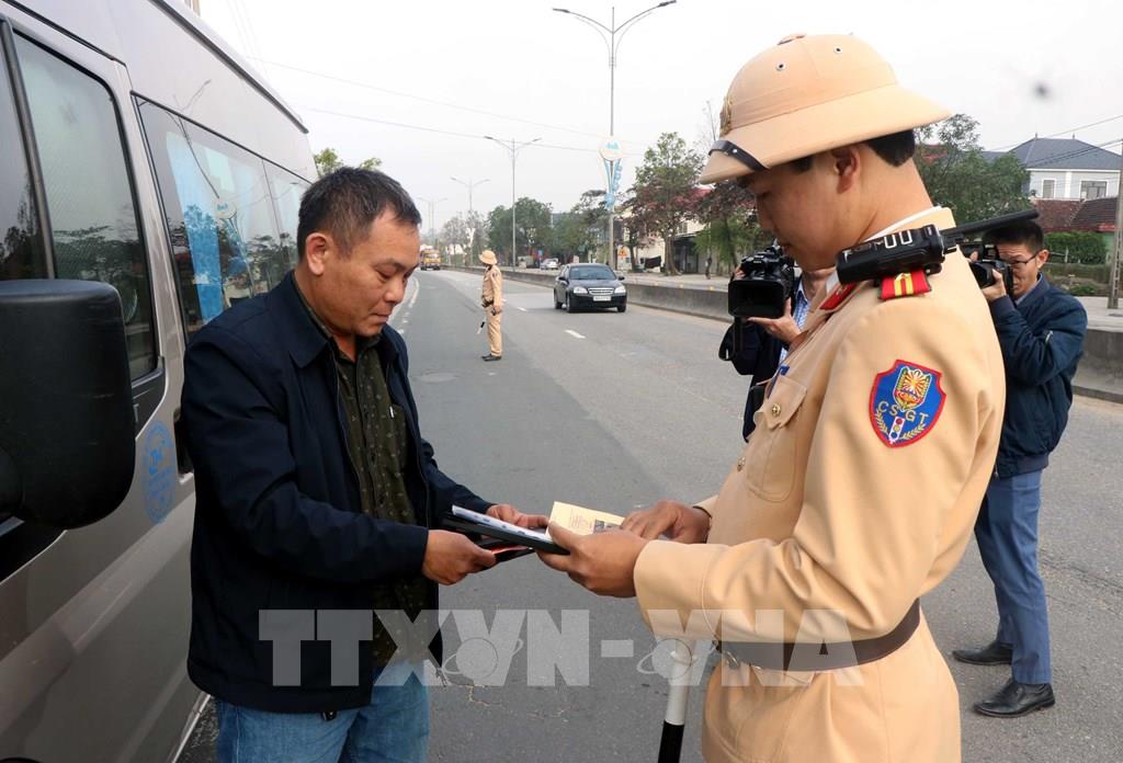 Lực lượng CSGT kiểm tra lái xe khi tham gia giao thông trong những ngày nghỉ Tết. Ảnh: Công Tường-TTXVN