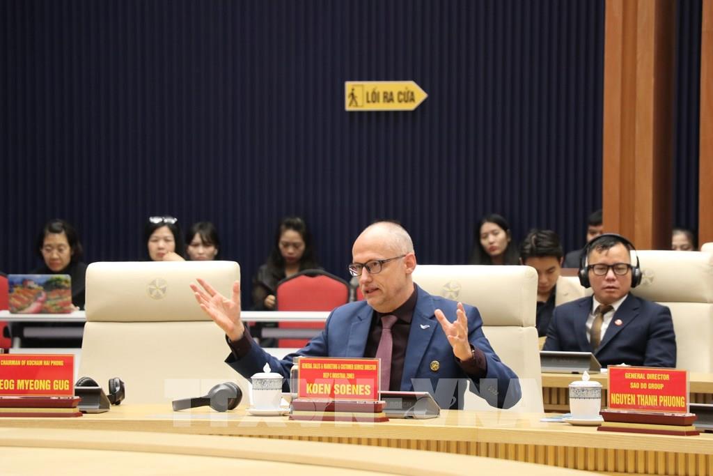 Ông Koen Soenes, Giám đốc Kinh doanh, Marketing và dịch vụ khách hàng, Tổ hợp Khu công nghiệp DEEP C, phát biểu tại Hội nghị. Ảnh: Mạnh Tú - TTXVN