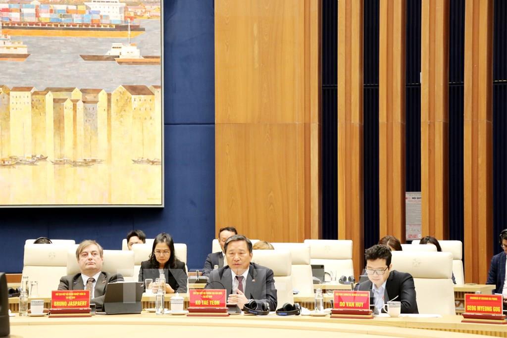 Ông Ko Tae Yeon, Chủ tịch Hiệp hội thương mại Hàn Quốc tại Việt Nam, phát biểu tại Hội nghị. Ảnh: Mạnh Tú - TTXVN