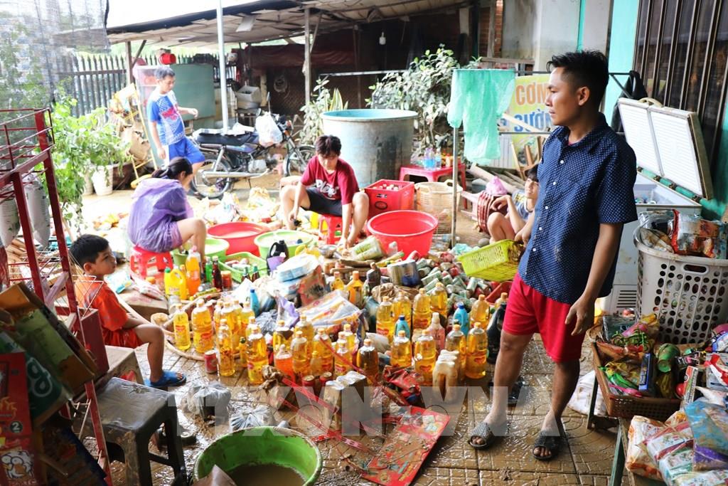 Nngười dân dọn dẹp vệ sinh, khắc phục hậu quả nặng nề do thiên tai, ổn định cuộc sống. Ảnh Đặng Tuấn -TTXVN