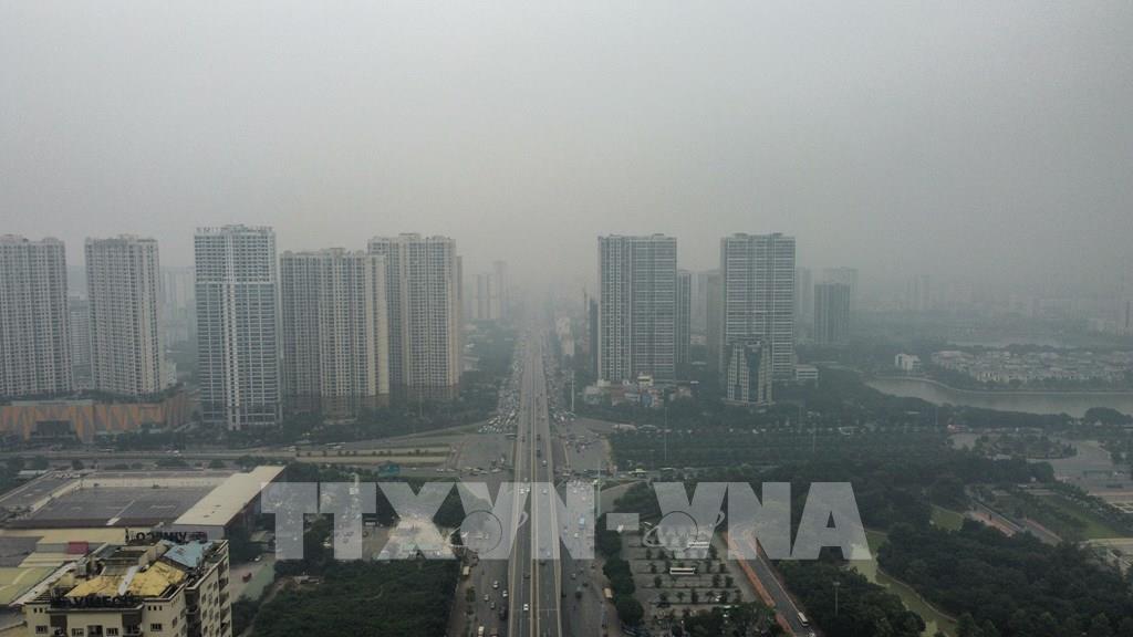 Tại Hà Nội, ô nhiễm không khí khiến tầm nhìn xa bị giảm rõ rệt. Ảnh tư liệu: Hoàng Hiếu - TTXVN