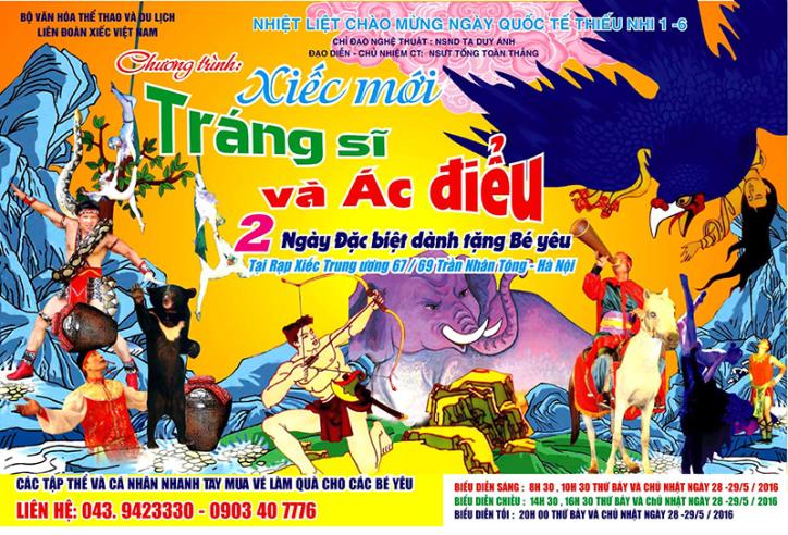 Nhân dịp 1/6, Rạp xiếc Trung ương mang đến cho các khán giả nhí chương trình xiếc mới "Tráng sỹ và ác điểu", dựa theo chuyện cổ tích "Thạch Sanh đánh trăn tinh".