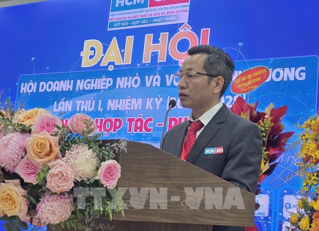 Ông Vũ Đăng Khuê, Giám đốc Công ty cổ phần Long Dương Group được bầu làm Chủ tịch Hiệp hội Doanh nghiệp nhỏ và vừa khu vực Bình Dương nhiệm kỳ 2026 - 2028. Ảnh: Huyền Trang - TTXVN