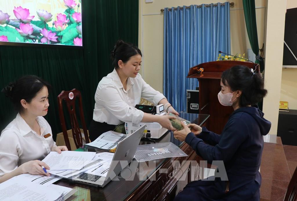 Người dân vui vẻ nhận tiền thưởng bàn giao mặt bằng sớm Dự án cảng hàng không quốc tế Gia Bình. Ảnh: Thanh Thương- TTXVN