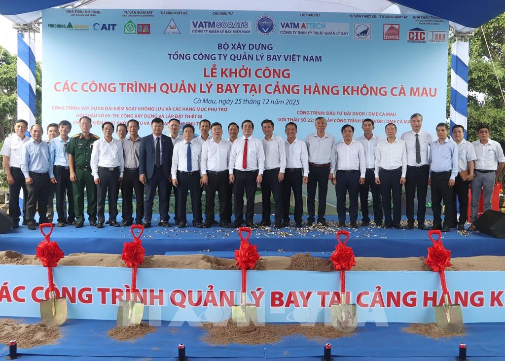Khởi công các hạng mục quản lý bay (Dự án nâng cấp Cảng hàng không Cà Mau) sau khi bàn giao mặt bằng cho chủ đầu tư. Ảnh: Tuấn Phi - TTXVN