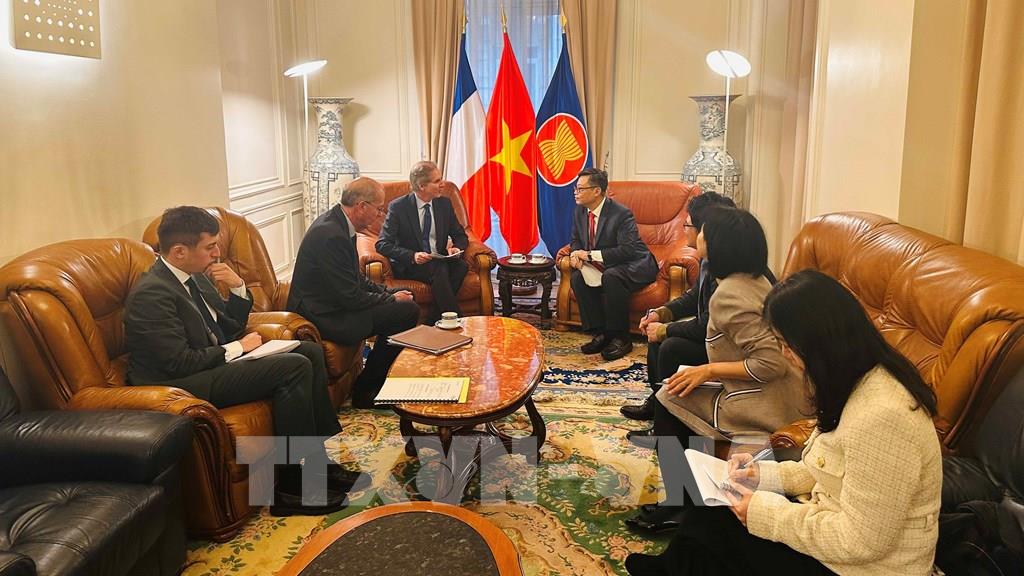 Về phần mình, ông Benoit Clocheret cho biết Artelia hiện có khoảng 800 nhân sự tại Việt Nam và coi Việt Nam là một trong những thị trường trọng điểm, không chỉ về kinh tế mà còn về chiến lược phát triển nguồn nhân lực. Các chuyên gia Việt Nam của tập đoàn không chỉ tham gia triển khai các dự án trong nước mà còn hỗ trợ hoạt động tại Lào, Philippines, Thái Lan và Indonesia, qua đó khẳng định vai trò “trung tâm năng lực” của Việt Nam trong mạng lưới khu vực. Ông Benoit Clocheret cũng bày tỏ tự hào khi Artelia được lựa chọn tham gia hỗ trợ, quản lý dự án trong giai đoạn đầu của dự án đường sắt tốc độ cao, cũng như đảm nhiệm nhiều hạng mục tư vấn, giám sát tại dự án sân bay mới tại Hà Nội. Theo ông, đây vừa là vinh dự, vừa là trách nhiệm lớn đối với tập đoàn trong việc đồng hành cùng quá trình hiện đại hóa hạ tầng của Việt Nam. Đại diện MEDEF International cho biết tổ chức này đang tích cực thúc đẩy việc đưa Việt Nam vào “tầm ngắm chiến lược” của cộng đồng doanh nghiệp Pháp, trong bối cảnh nhiều doanh nghiệp có xu hướng ưu tiên các thị trường lớn như Mỹ, Trung Quốc hay Ấn Độ. Với quy mô dân số hơn 100 triệu người, tốc độ tăng trưởng cao, nguồn nhân lực chất lượng và quyết tâm cải cách mạnh mẽ, Việt Nam được đánh giá là thị trường giàu tiềm năng, xứng đáng được quan tâm nhiều hơn trong chiến lược mở rộng quốc tế của doanh nghiệp Pháp. Hai bên nhất trí tiếp tục phối hợp tổ chức Diễn đàn doanh nghiệp Việt - Pháp lần thứ hai tại Pháp, dự kiến vào giữa tháng 6 tới, sau khi Chính phủ mới của Việt Nam được kiện toàn. Phía MEDEF International đề xuất có sự tham dự của lãnh đạo cấp cao, trong đó có thể là Bộ trưởng Tài chính Việt Nam, nhằm gia tăng sức lan tỏa và thu hút cộng đồng doanh nghiệp hai nước tham gia sâu rộng hơn.Các lĩnh vực hợp tác tiềm năng được trao đổi tại cuộc gặp trải rộng từ giao thông vận tải (đường sắt tốc độ cao, metro, hàng không), năng lượng (năng lượng tái tạo, điện hạt nhân), công nghiệp công nghệ cao, bán dẫn, y tế, hàng không vũ trụ đến quốc phòng và công nghiệp biển. Đại diện MEDEF nhấn mạnh Pháp có thế mạnh nổi bật trong lĩnh vực điện hạt nhân, với hơn 60 lò phản ứng đang vận hành cùng kinh nghiệm sâu rộng về công nghệ và quản lý an toàn, có thể đóng góp tích cực cho các định hướng phát triển năng lượng của Việt Nam.