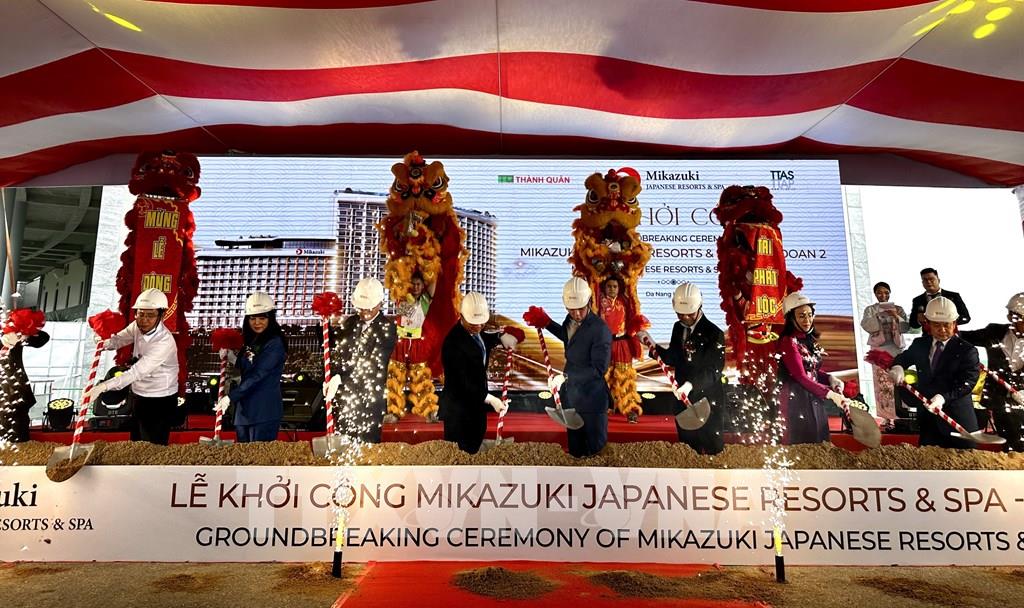 Đại biểu thực hiện nghi thức khởi công giai đoạn 2 của dự án Mikazuki Japanese Resorts & Spa tại thành phố Đà Nẵng. Ảnh: Trần Lê Lâm - TTXVN