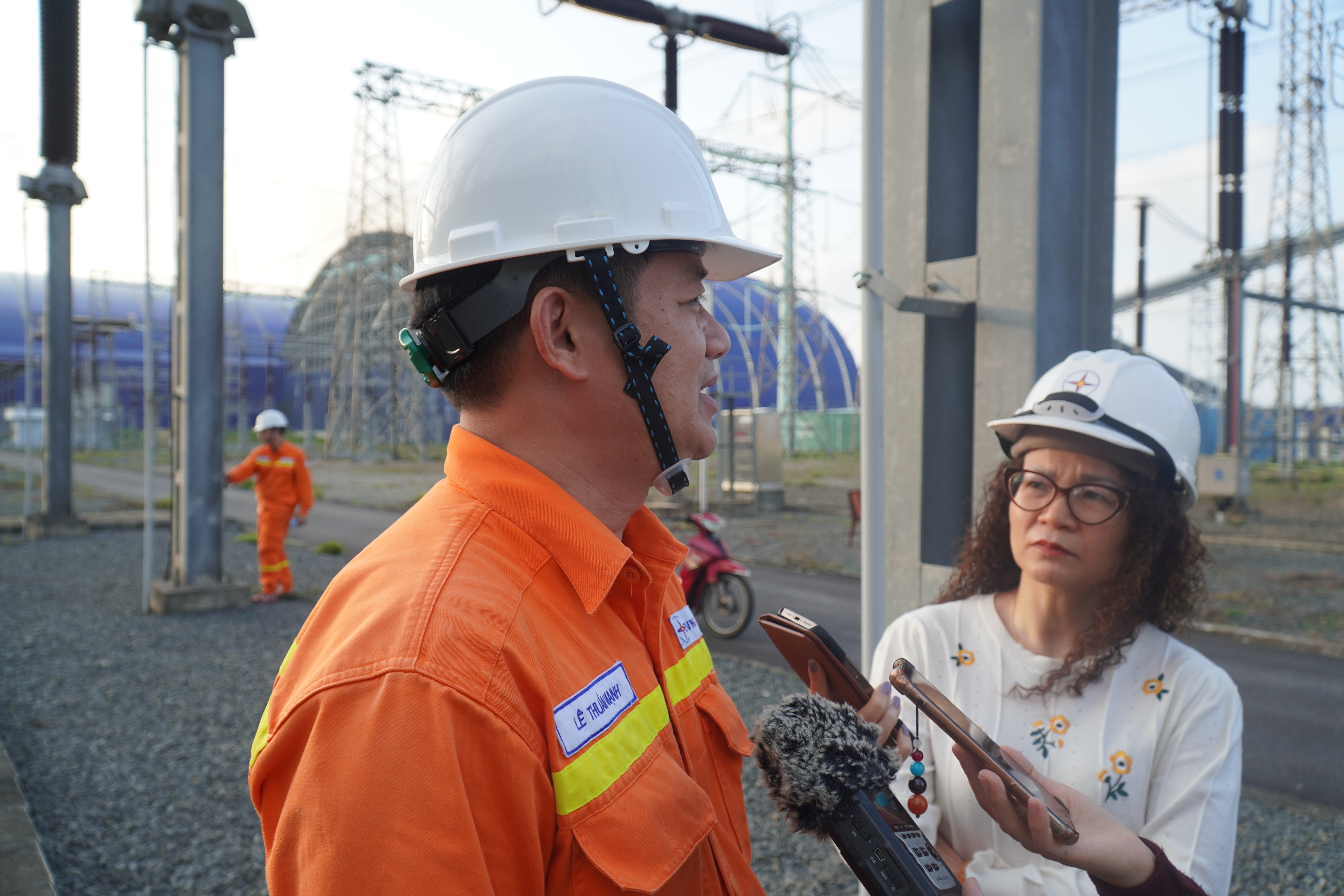 Phóng viên trao đổi với anh Nguyễn Tuấn Sơn, công nhân Tổ quản lý vận hành đường dây Hà Tĩnh. Ảnh: Diệp Anh/Bnews/vnanet.vn