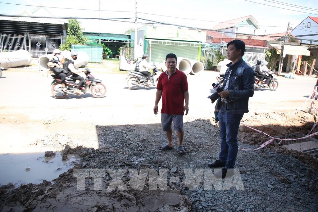 Người dân ở xã Châu Thành, tỉnh Tây Ninh phản ánh quá trình thi công ảnh hưởng đến sinh hoạt và buôn bán của người dân. Ảnh: Giang Phương – TTXVN