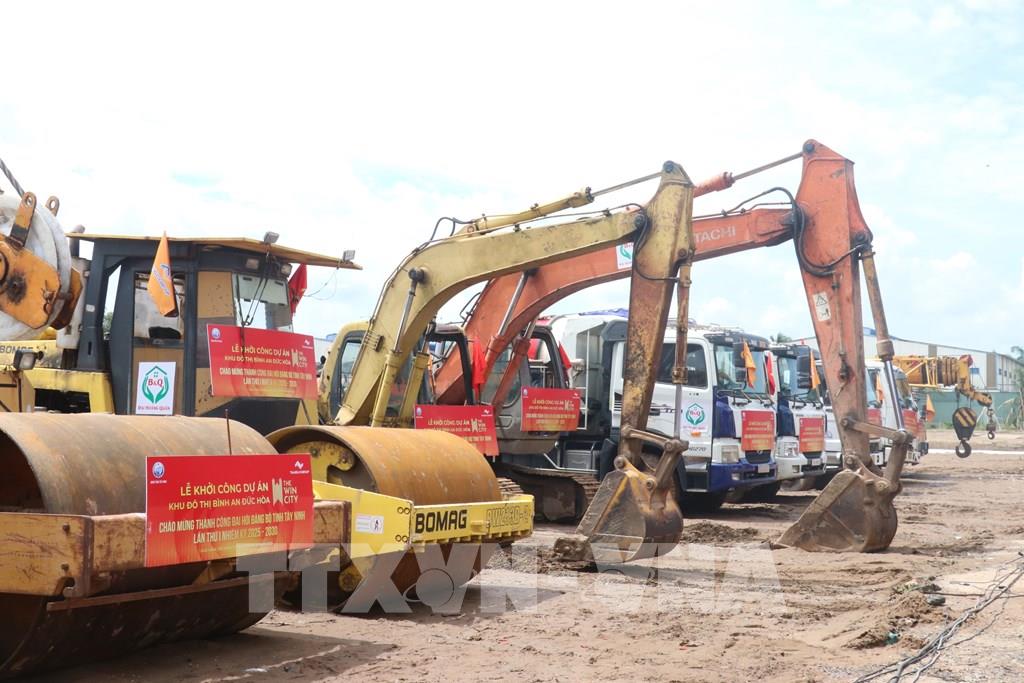 Lãnh đạo tỉnh Tây Ninh cùng các đại biểu thực hiện nghi thức khởi công dự án. Ảnh: Bùi Giang - TTXVN  Chủ tịch UBND tỉnh Tây Ninh Nguyễn Văn Út phát biểu tại lễ khởi công. Ảnh: Bùi Giang - TTXVN