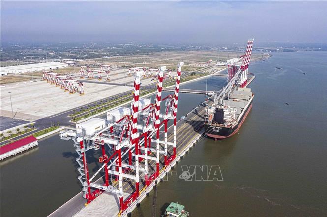Cảng Quốc tế Long An (huyện Cần Giuộc, tỉnh Long An) hiện lắp đặt 6 thiết bị cẩu STS, 18 cẩu RTG. Ảnh: Vũ Sinh – TTXVN