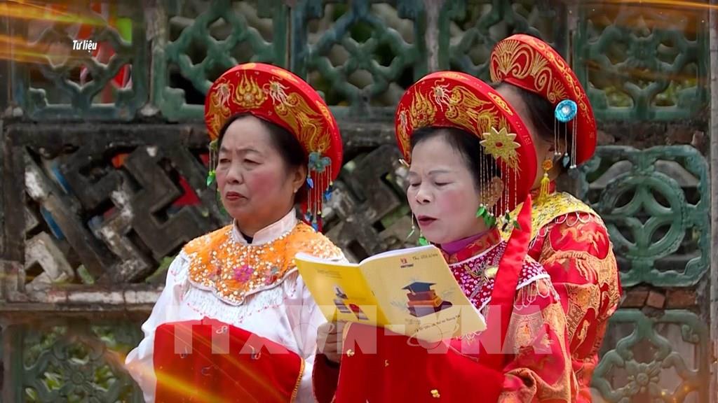 Tế Cửu Khúc là dạng thức tế vua theo loại hình nghệ thuật diễn xướng dân gian "vừa tế vừa ca". Ảnh: Hải Yến - TTXVN