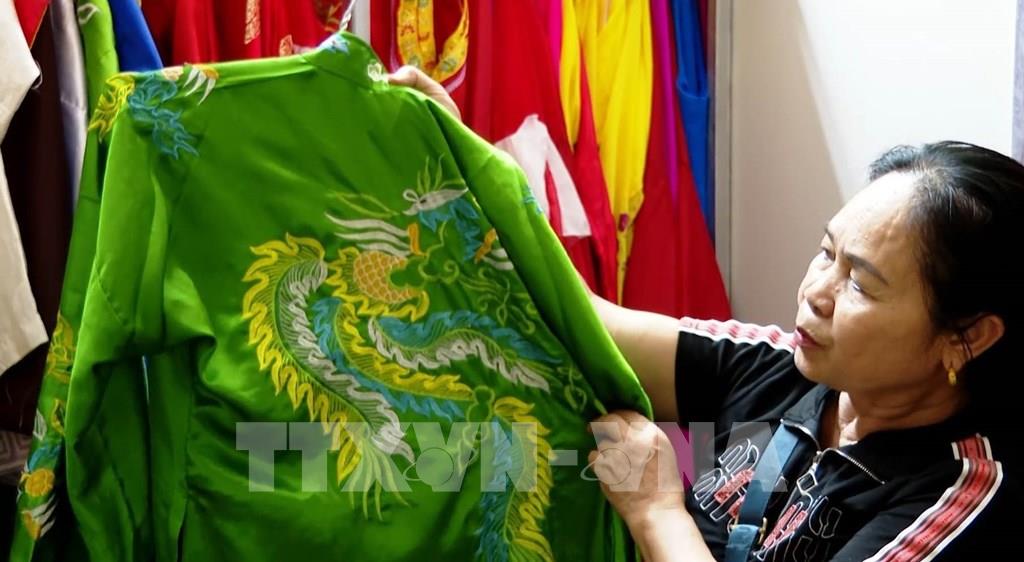 Những người tham gia tế sẽ được mặc trang phục tùy vào vai trò trong đội tế. Ảnh: Hải Yến - TTXVN