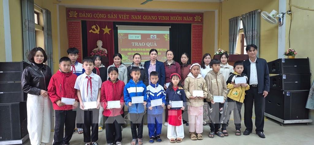 Sở Giáo dục và Đào tạo tỉnh Nghệ An trao quà Tết cho các em học sinh vùng cao. Ảnh: Bích Huệ - TTXVN