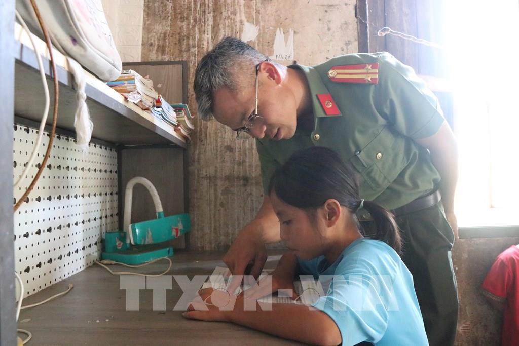 Công an xã Ea Wer đã nhận nuôi, đỡ đầu 3 cháu thuộc 2 hộ gia đình có hoàn cảnh đặc biệt khó khăn. Ảnh: Nguyên Dung – TTXVN