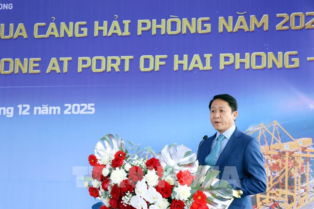 Ông Nguyễn Tường Anh, Tổng Giám đốc Công ty Cổ phần Cảng Hải Phòng phát biểu tại buổi lễ. Ảnh: Mạnh Tú – TTXVN