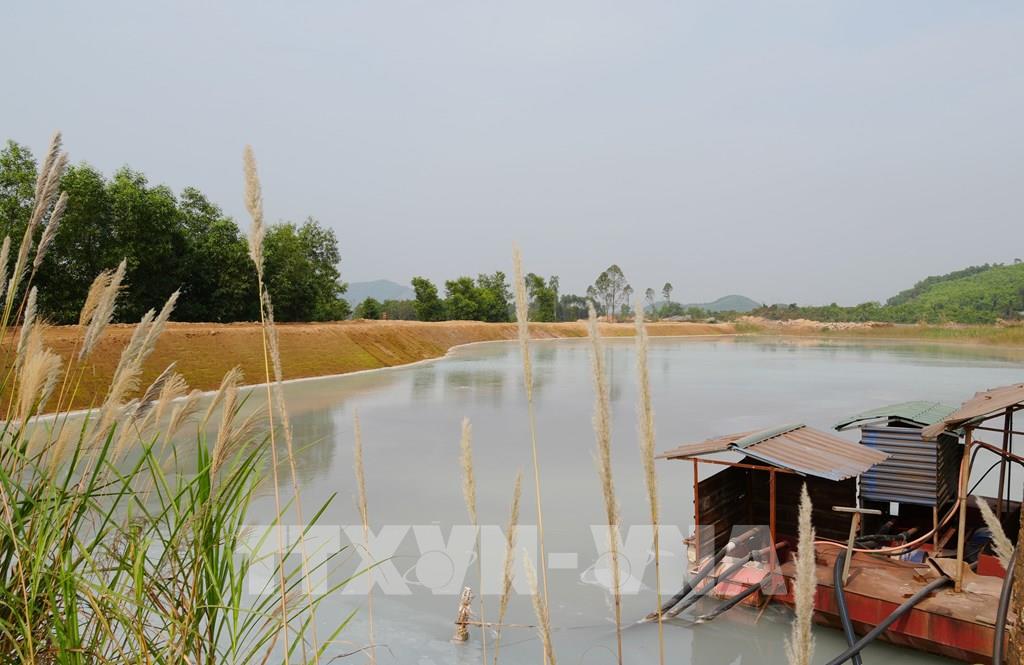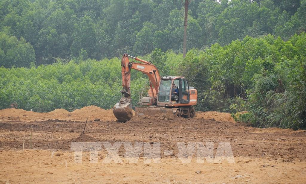 Công ty Cổ phần Luyện kim đen Thái Nguyên san gạt, cải tạo diện tích đất bị ảnh hưởng của sự cố vỡ bờ bao hồ chứa nước, tại xóm Cốc Thị, xã Nam Hòa. Ảnh: Hoàng Nguyên - TTXVN