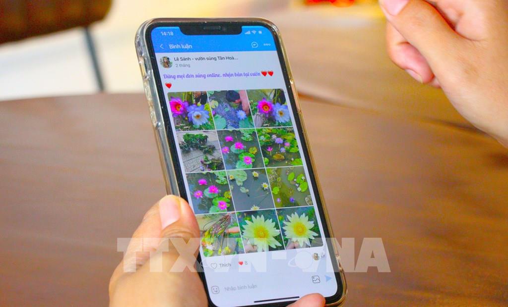 Khách đặt hàng mua hoa giống qua mạng xã hội. Ảnh: Nguyễn Hằng - TTXVN