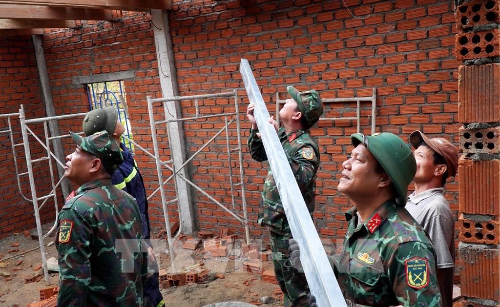 Thiếu tá Lê Văn Thịnh, Trợ lý Quân lực, Ban chỉ huy Phòng thủ khu vực 1 - Sơn Tịnh tâm sự, bản thân anh rất vui khi nằm trong đội hình xây nhà giúp dân đợt này. Là quân nhân, anh luôn nêu cao tinh thần, trách nhiệm, phấn đấu hoàn thành tốt nhiệm vụ được Đảng, Nhà nước giao phó. “Mặc cho vắt cắn, áo quần thấm đẫm máu, tôi vẫn xác định sẽ bám sát công trường bằng mọi giá. Việc còn thì người còn, phải làm sao mang lại cho bà con một “mái ấm” chắc chắn, kiên cố nhất có thể. Mỗi một viên gạch hay mỗi mạch hồ đều chất chứa trong đó tình cảm thiêng liêng của người lính”, Thiếu tá Thịnh nói. Trung tá Nguyễn Hữu Hoàng khẳng định, với khẩu hiệu “Quân với dân một ý chí - Xây nhà nhanh, chất lượng, đảm bảo an toàn tuyệt đối”, “Hết việc không hết giờ”, đơn vị đã tập trung đẩy nhanh tiến độ thi công công trình, dồn toàn lực chạy đua với thời gian, tăng tốc, bứt phá để “về đích” đúng hạn.Cơ hội đón Tết trong ngôi nhà mới