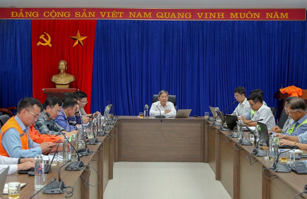 Phó Tổng giám đốc EVN Nguyễn Tài Anh chủ trì họp giao ban công trường Trung tâm Điện lực Quảng Trạch. Ảnh: Anh Quân/Bnews/vnanet.vn
