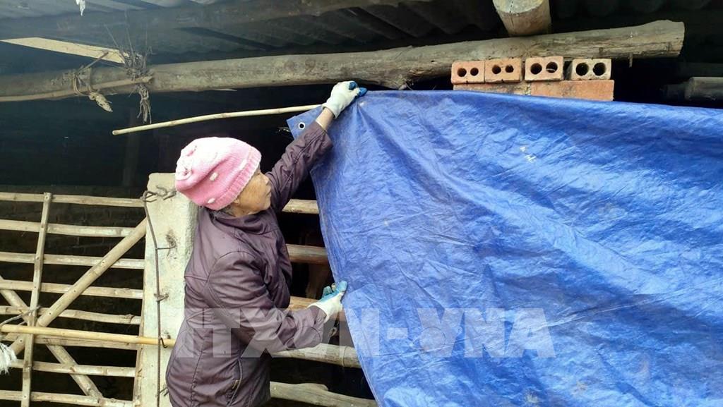 Người dân che bạt tránh gió cho đàn gia súc. Ảnh minh họa: TTXVN phát