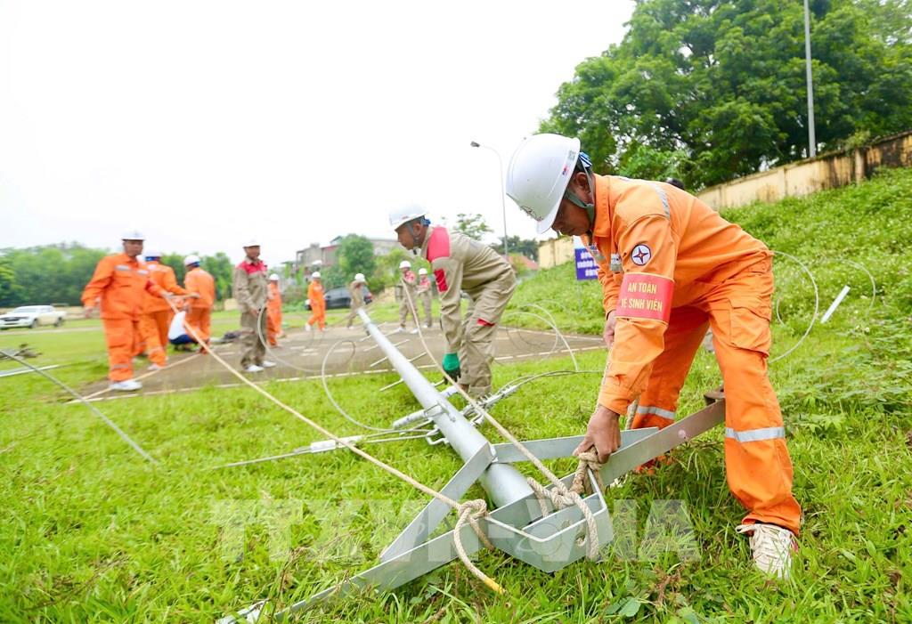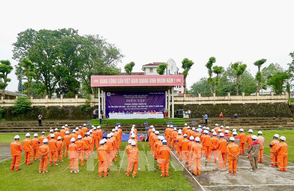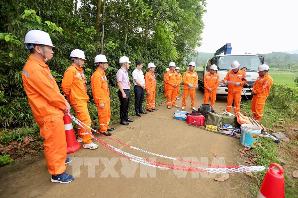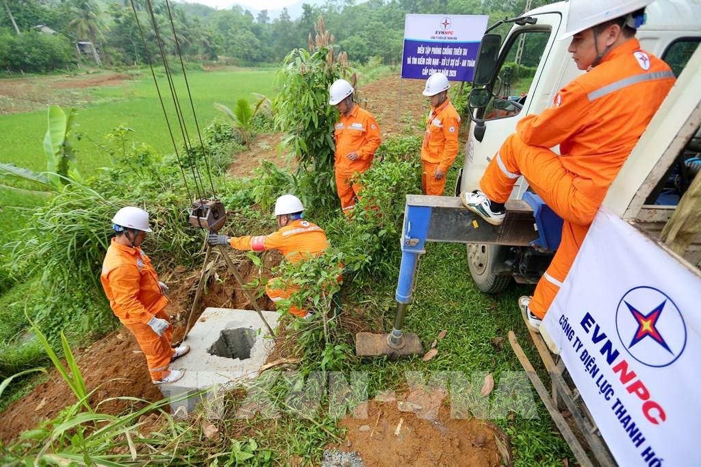 Công ty Điện lực Thanh Hóa triển khai tình huống giả định. Ảnh Khiếu Tư - TTXVN