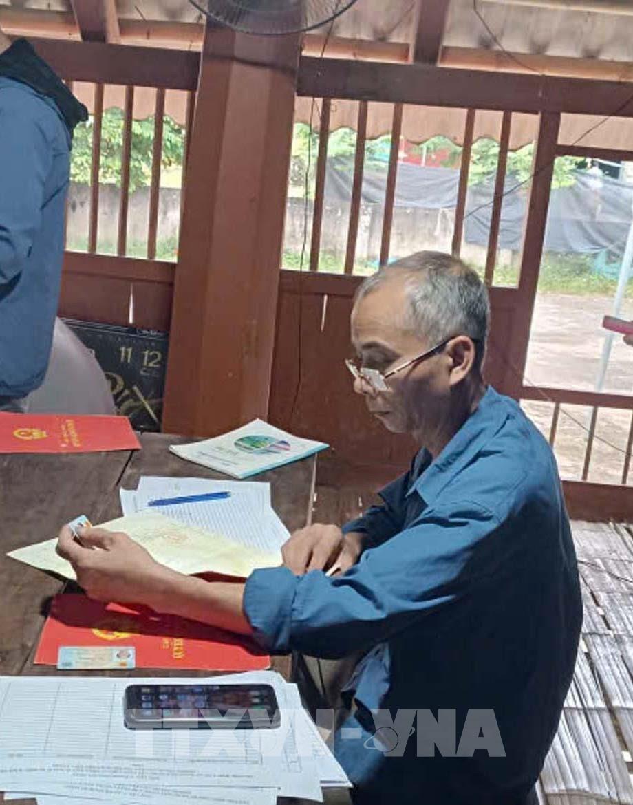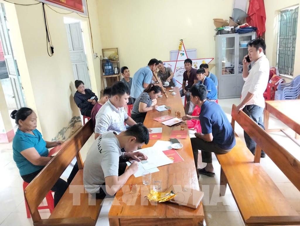 Người dân xã Thiết Ống, tỉnh Thanh Hóa, kê khai thông tin đất đai. Ảnh: TTXVN phát