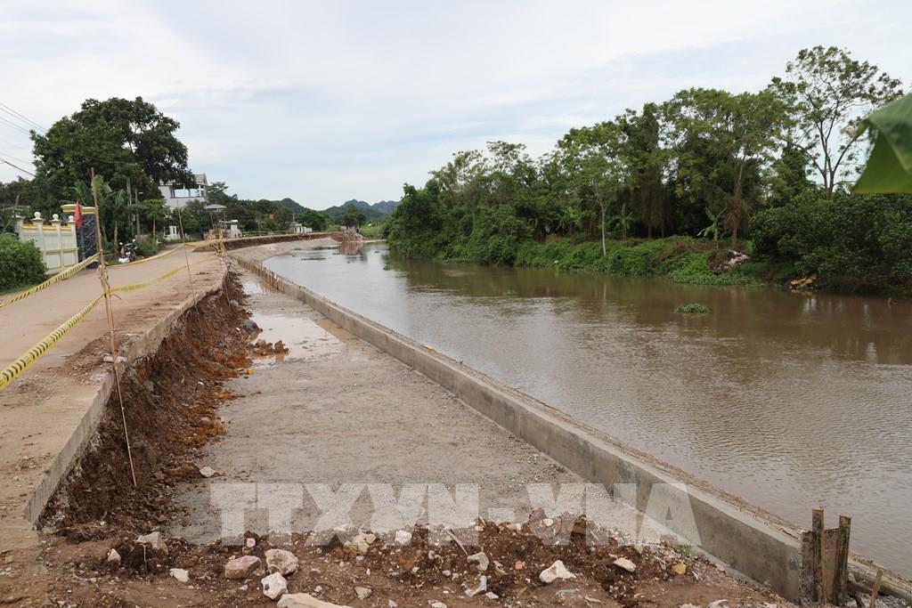 Từ đầu năm 2025, công trình đã được nhà thầu triển khai thi công, tuy nhiên, do ảnh hưởng của các cơn bão số 3, số 5, số 10, số 11 nên công tác thi công trên công trường bị gián đoạn; vừa thi công vừa phải có phương án phòng, chống lụt, bão đảm bảo an toàn cho toàn tuyến đê. Bên cạnh đó, đoạn đê thi công nằm trong tuyến đường đi lại của nhân dân, mật độ phương tiện giao thông cao, đã ảnh hưởng đến tiến độ thi công công trình.