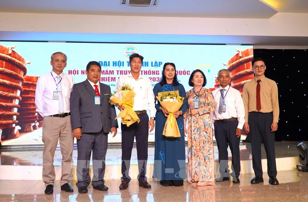 Ban chấp hành Hội Nước mắm truyền thống Phú Quốc nhiệm kỳ 2025-2030 ra mắt hứa hẹn. Ảnh: Văn Sĩ/TTXVN