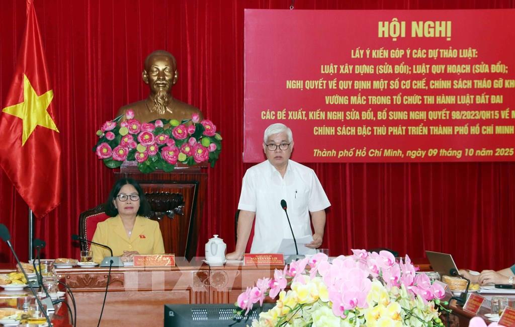 Đó là ý kiến thống nhất của các đại biểu tại Hội nghị lấy ý kiến đóng góp các Dự thảo Luật Xây dựng (sửa đổi); Luật Quy hoạch (sửa đổi); Nghị quyết về quy định một số cơ chế, chính sách tháo gỡ khó khăn, vướng mắc trong tổ chức thi hành Luật Đất đai; đề xuất, kiến nghị sửa đổi, bổ sung Nghị quyết 98/2023/QH về một số cơ chế, chính sách đặc thù phát triển Thành phố Hồ Chí Minh, do Đoàn đại biểu Quốc hội Thành phố Hồ Chí Minh tổ chức sáng 9/10.