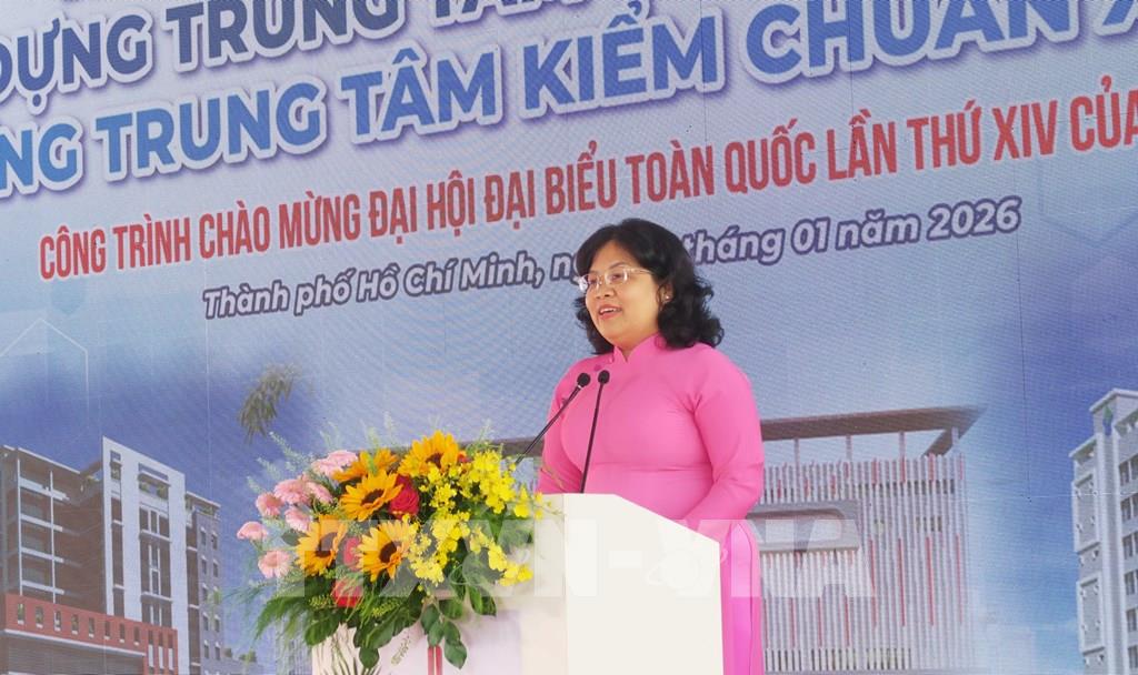 Bà Nguyễn Trường Nhật Phượng, Phó Chủ tịch Hội đồng nhân dân Thành phố Hồ Chí Minh phát biểu tại Lễ khởi công. Ảnh: Đinh Hằng – TTXVN