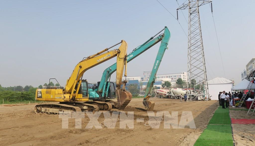 Các đại biểu thực hiện nghi thức khởi công. Ảnh: Đinh Hằng - TTXVN