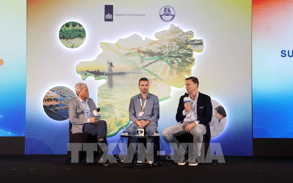 Diễn đàn Doanh nghiệp Việt Nam - Hà Lan với chủ đề “Định hình tương lai nuôi trồng thủy sản bền vững tại Đồng bằng sông Cửu Long”. Ảnh: Xuân Khu - TTXVN