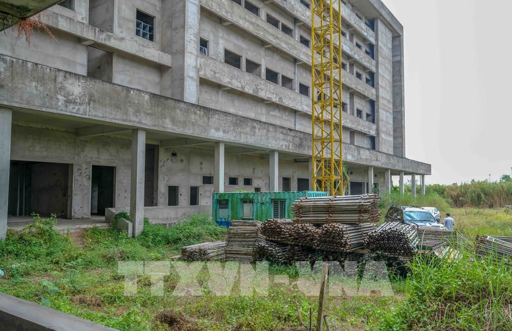 Phần xây dựng đã hoàn thành khoảng 82%, phần cung cấp, lắp đặt thiết bị xây dựng chỉ đạt 15,3% và đặc biệt là phần công việc cung cấp, lắp đặt trang thiết bị y tế chuyên dùng và không chuyên dùng (phần cốt lõi của bệnh viện) vẫn là 100% chưa thực hiện. Ảnh: Thanh Liêm - TTXVN