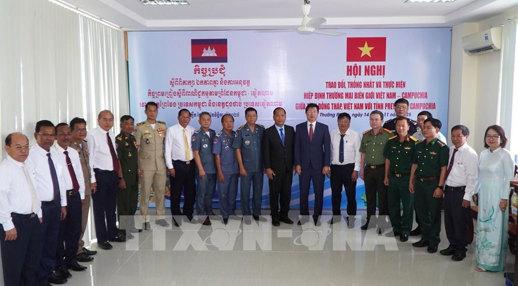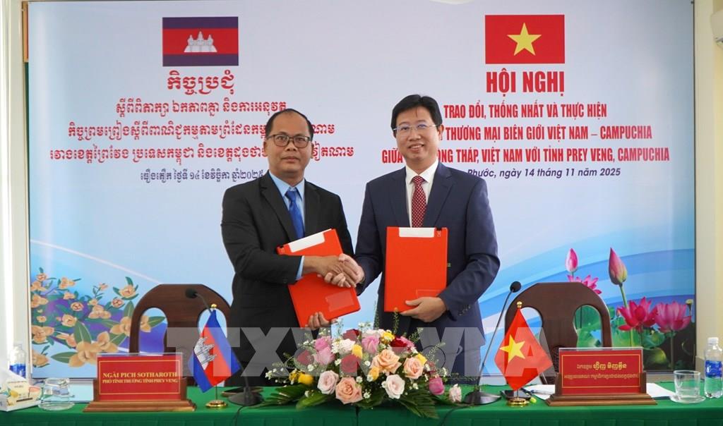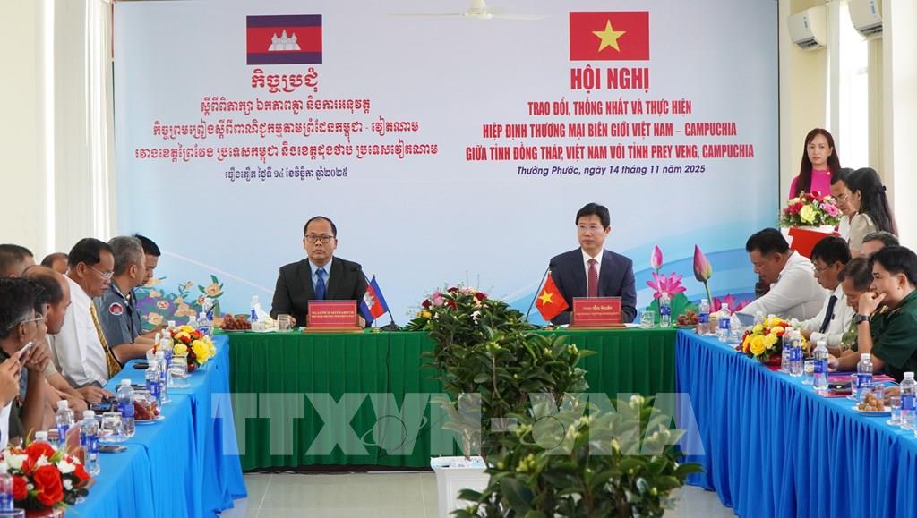 Phó Chủ tịch UBND tỉnh Đồng Tháp Huỳnh Minh Tuấn cho biết, thời gian qua, 2 tỉnh Đồng Tháp và Prey Veng đã không ngừng củng cố, phát triển mối quan hệ hữu nghị, đoàn kết, hợp tác toàn diện trên nhiều lĩnh vực. Hai bên đã duy trì tốt cơ chế phối hợp trong giữ gìn an ninh, trật tự khu vực biên giới, tạo điều kiện thuận lợi cho người dân hai bên qua lại giao lưu, buôn bán, góp phần xây dựng đường biên hòa bình, hữu nghị và cùng phát triển.Trong 9 tháng của năm 2025, tổng kim ngạch xuất, nhập khẩu hàng hóa của Đồng Tháp qua biên giới đạt 984,7 triệu USD, trong đó, kim ngạch xuất khẩu đạt 92,4 triệu USD, kim ngạch nhập khẩu đạt 892,3 triệu USD. Các mặt hàng xuất khẩu qua biên giới chủ yếu là phân bón, thức ăn chăn nuôi, thủy sản…; hàng hóa nhập khẩu chủ yếu là cát vàng tự nhiên, lúa, đường cát, quặng sắt... Tình hình an ninh, trật tự trên tuyến biên giới Đồng Tháp - Prey Veng được đảm bảo ổn định. Lực lượng chức năng hai bên phối hợp tuần tra, kiểm soát tốt tuyến biên giới, bảo đảm an toàn đường biên, cột mốc.