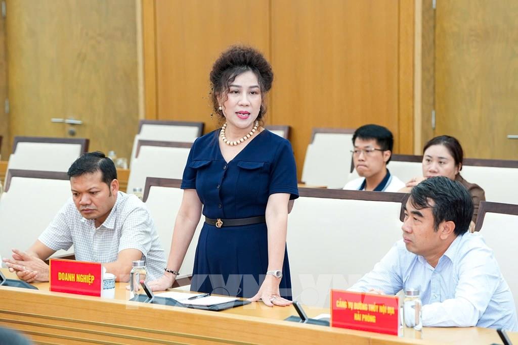 Các doanh nghiệp trong lĩnh vực hàng lỏng phát biểu, kiến nghị tại Hội nghị. Ảnh: Hoàng Ngọc – TTXVN