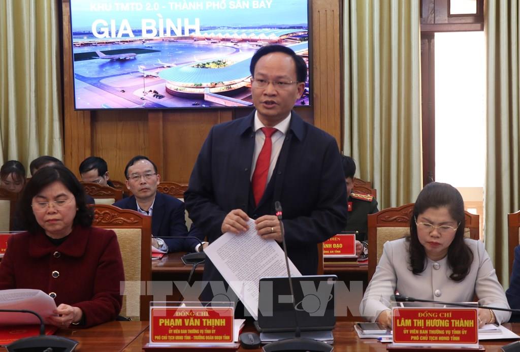 Phó Chủ tịch UBND tỉnh Bắc Ninh Phạm Văn Thịnh phát biểu tại buổi làm việc. Ảnh: Thanh Thương - TTXVN